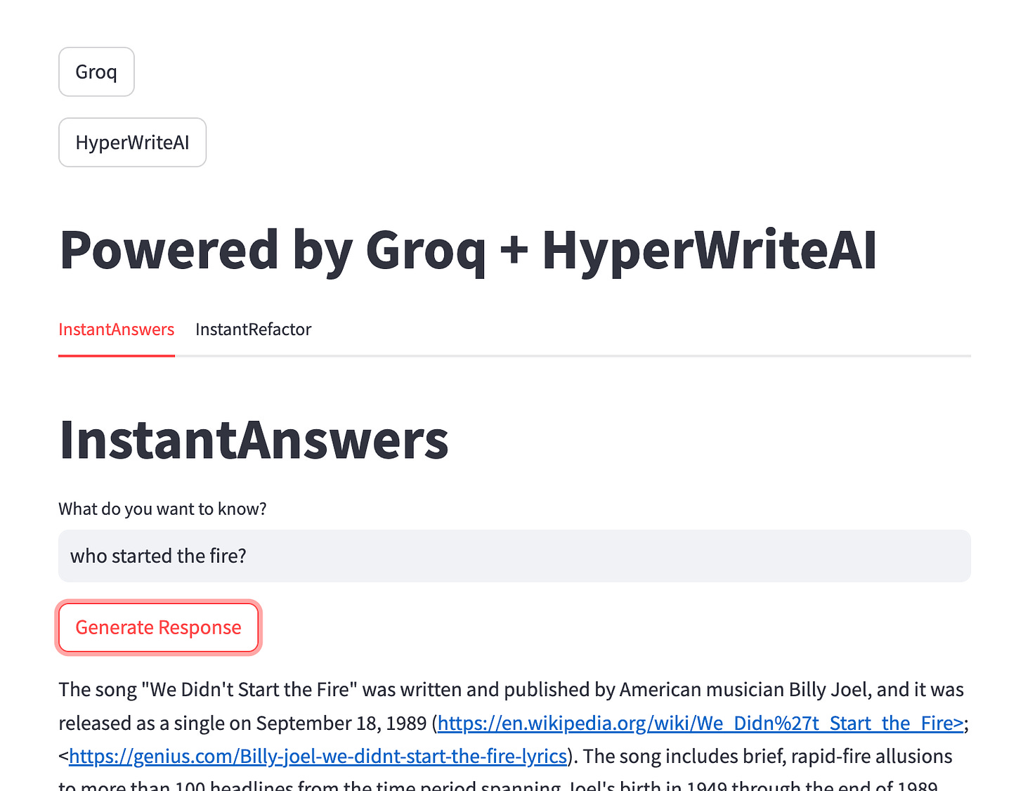 Want to test-drive a really fast Answers Engine? Try Groq! Matt Shumer shares a live demo of what is possible with Groq, which is serving Mixtral at nearly 500 tokens per second and the answers or outputs are “nearly” instantaneous.