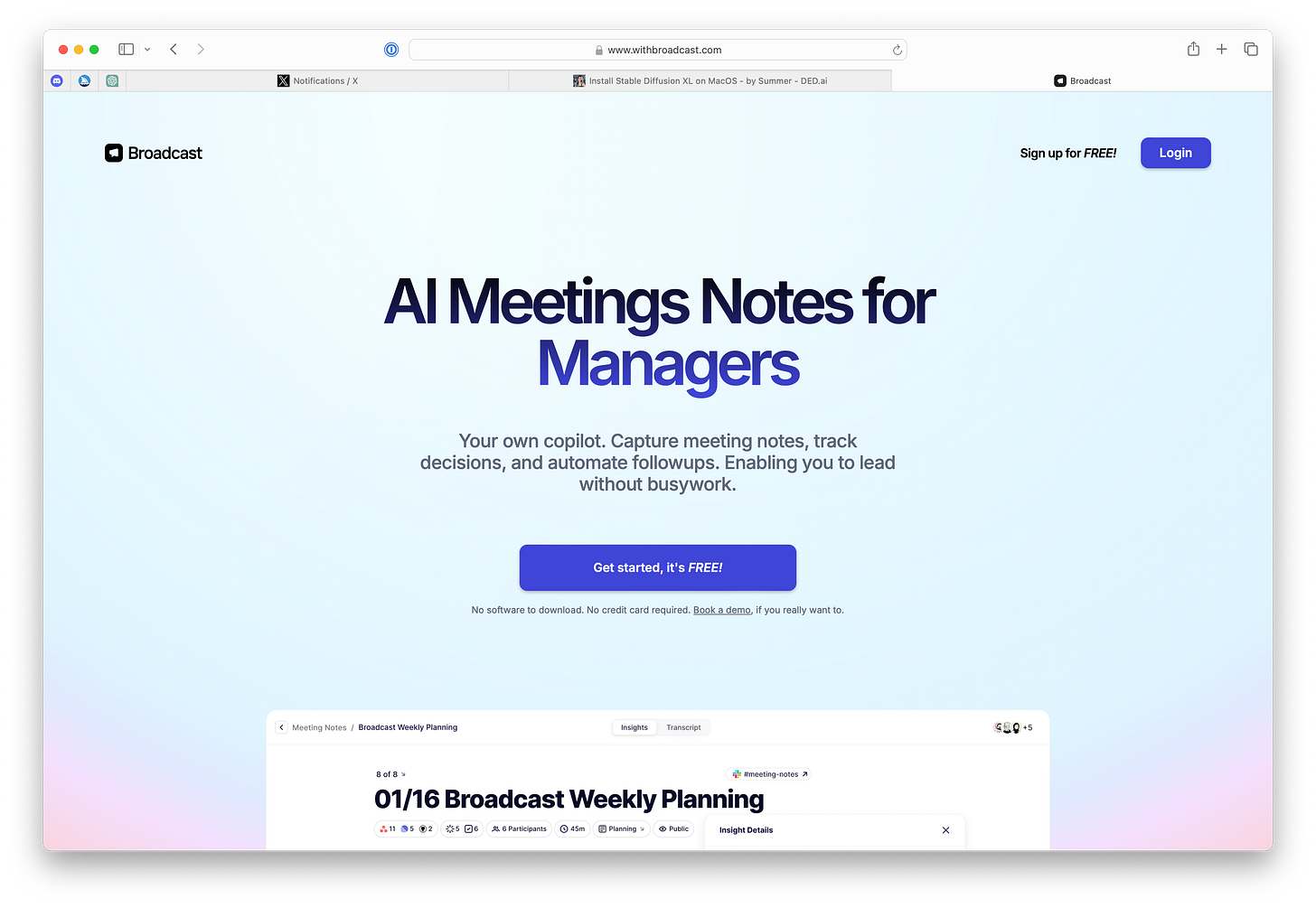 Next up is another meeting notes tool called Broadcast which has free and paid plans: