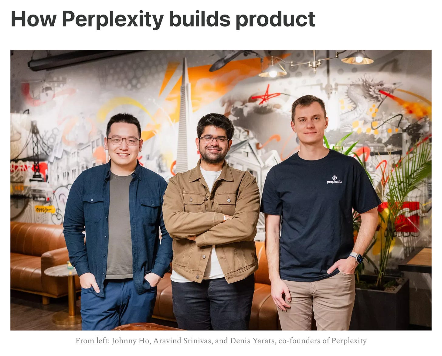 And then a good look at how one of my favorite apps out there right now, Perplexity, builds product. They keep things small, nimble, and encourage folks to ask tons of questions along the way.
