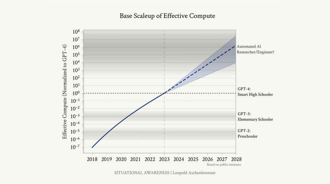 Former OpenAI researcher Leopold Aschenbrenner shared some thoughts on AGI and the rate of progress. An interesting point is his thoughts on economic and military advantages.